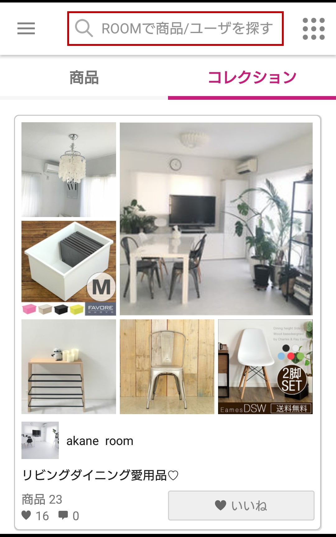 更に、リスト化した商品を選んだユーザーのセンスをチェックすることもできるので、センスの似たユーザーと繋がっていくことでセンスや趣味を共有することも可能になります。新たなインテリア配置を考えるときは、他の人のセンスと触れ合うことで新たな模様替えの発想がひらめくかもしれません。アイテムの購入前にいろいろな思考をめぐらせられるのが、人とつながる通販アプリ「ROOM」の最大の魅力なのです。