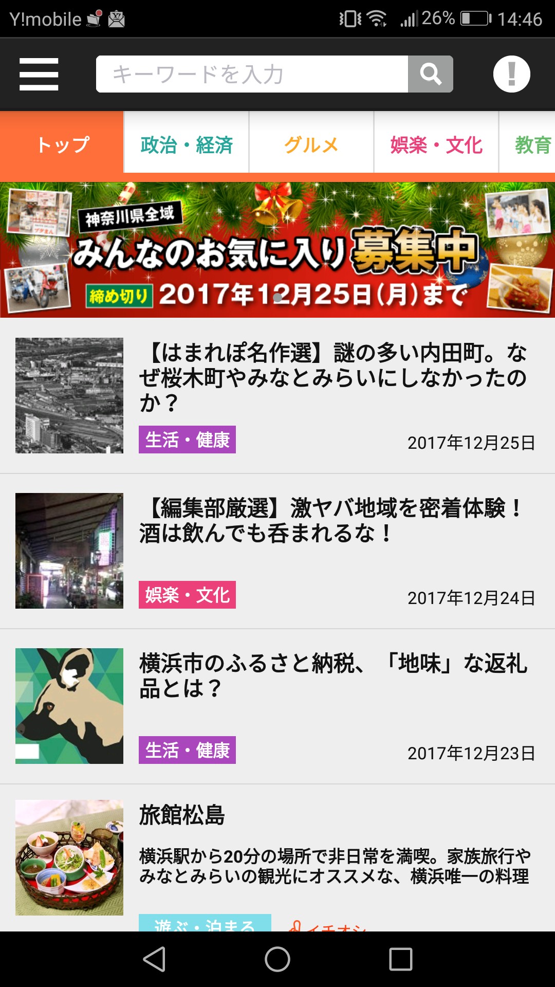 横浜を中心とした地域情報を配信する「はまれぽ.com」による情報アプリです。政治・経済、グルメ、娯楽・文化、教育・育児、生活・健康、インタビューなどバラエティに富んだ情報を得られます。地域特化型の情報アプリならではのディープな情報が多数掲載されていますので、地元が横浜周辺の方はもちろん、横浜がお好きな方、横浜に行ってみたい方にもおすすめのアプリです。