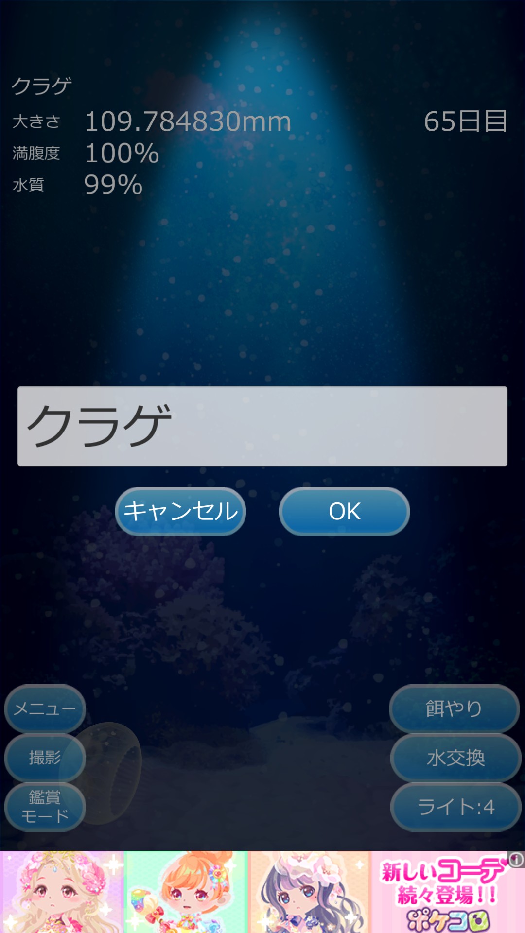 スマホの中でふわふわと泳ぐクラゲに、好きな名前をつけることができ、また自由に変更できるので愛着も湧いてしまいますよ。