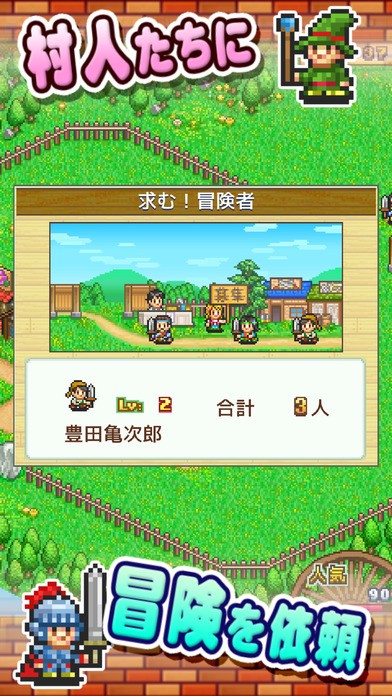 ある程度人気が高くなれば冒険者が永住してくれて収入も安定します。他プレイヤーとの競争はあまりなく、課金しなくてもゆっくりできる優しい無料ゲームアプリです。