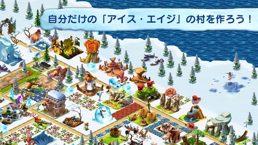 アイス・エイジのキャラクターがたくさん登場する街づくり系の無料ゲームアプリです。氷の下に村があったという世界観がとても素敵な作品。動物たちが平和に暮らせる村をプレイヤーの手で作りましょう。