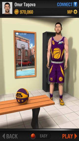 5本のフリースローをどれだけ決められるかなど、モードは全部で6種類あります。プレイヤーとのオンライン対戦もあり、遊んだときのポイントでユニフォームやボールなどをカスタマイズできます。