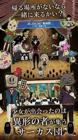 美しいイラストと独特の色使い、そして人ならざる多数のキャラクターにより絵本のような魅力の放置ゲーム『笑わない少女と異形のサーカス』