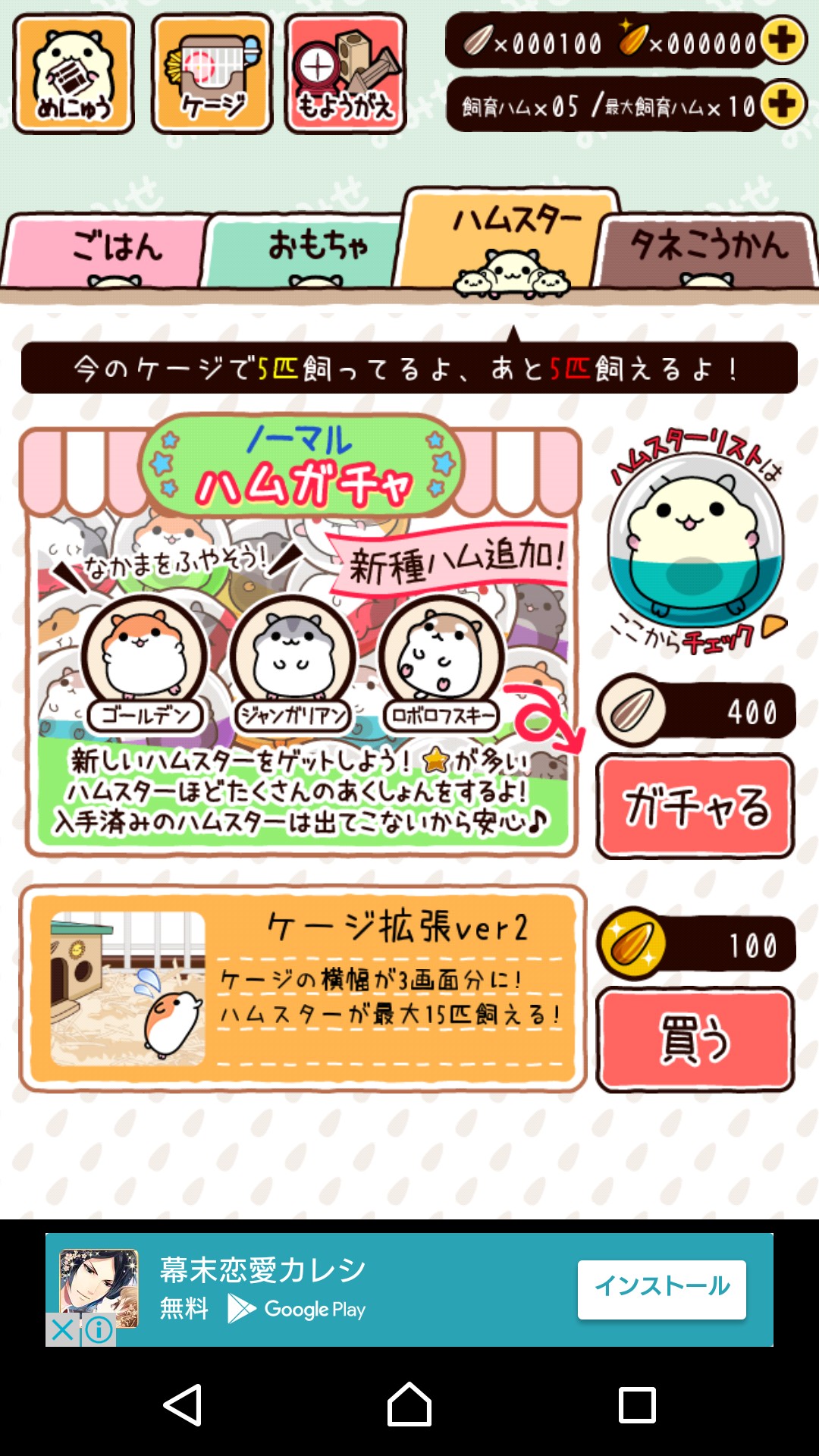 ハムスターたちの種類も多く、新しいハムスターはガチャで手に入れることが出来ます。