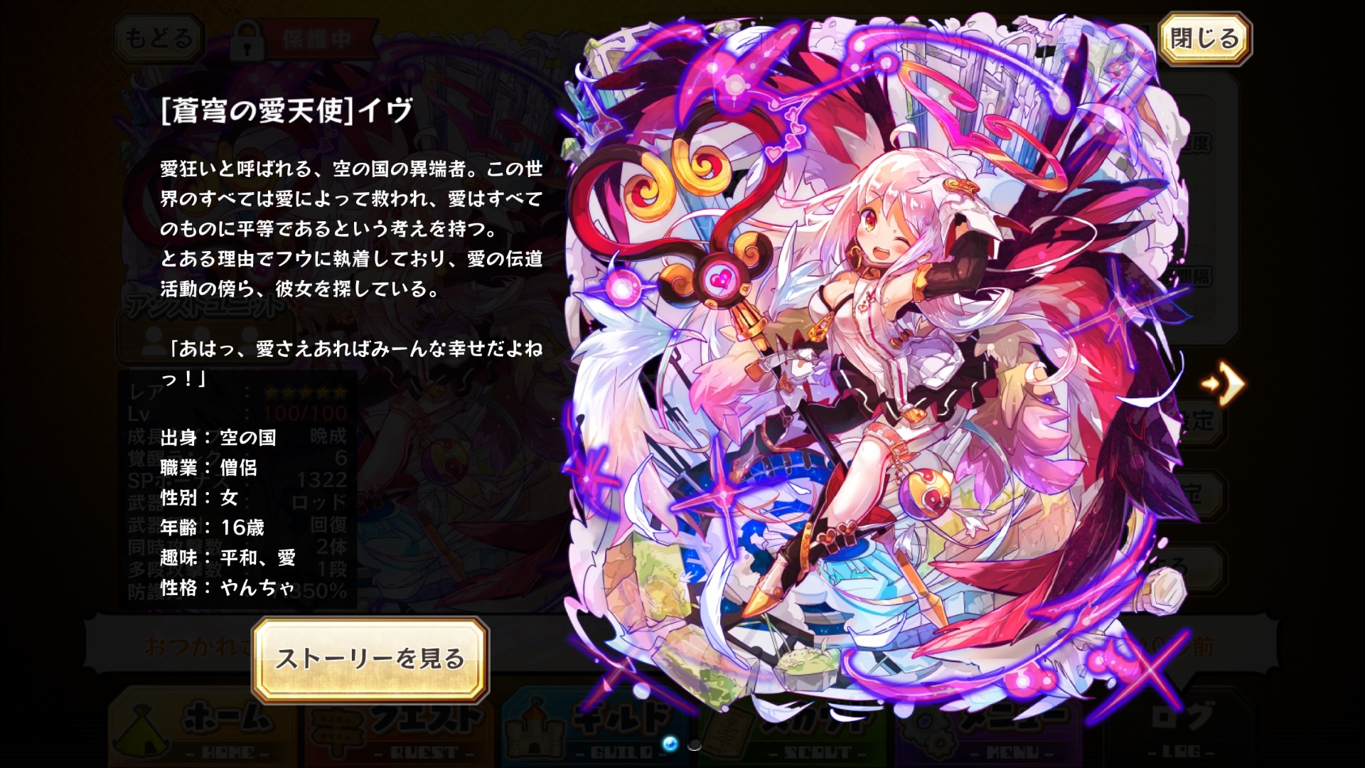 スカウト(ガチャ)で手に入るキャラクターには、それぞれ会話形式のストーリーがあり、そのストーリーを見るとどういった性格なのかがわかります。
