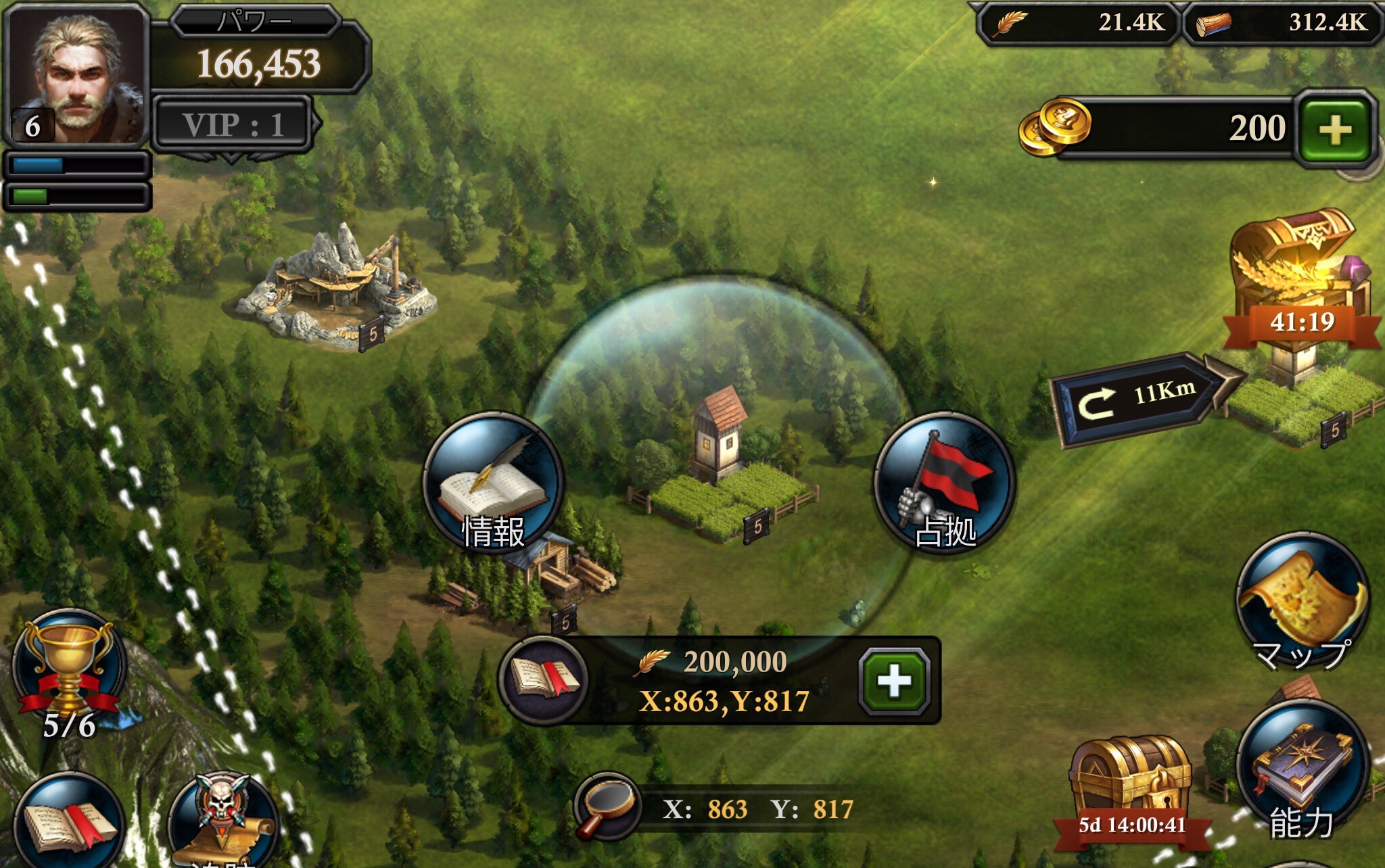 自分の街と同じような形態の街がいくつも点在しています。これは、他のプレイヤーの街です。彼らとは同盟を組むことができます。誰かの同盟に参加することも、自分で同盟を作ることもできます。