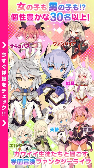 全て声優つきですから、あなたのお気に入りのキャラクターがきっと見つかるでしょう。プレイヤーは冒険者を育成する学園に赴任してきた新人教師です。