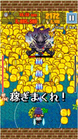 レトロなドット絵で描かれたキャラクターが可愛い、弾幕シューティングRPG『シューティングゲームで稼ぎを求めるのは間違っているだろうか』。キャラクターをスライドで操作していき、次々に現れるモンスターたちをやっつけていきましょう。敵を倒しながら一攫千金が狙う面白いアプリゲームで、モンスターを倒すとお金がザクザクと出てくるので気分爽快です。キャラクターによって攻撃の仕方も変わり、ゲームを進めていくと、新しい仲間もどんどん増えていくので、それぞれのキャラクターを育てるのがとても楽しくなってくるでしょう。