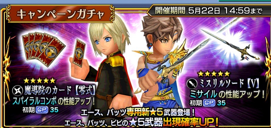 【DFFOO】エース登場によりキャンペーンガチャ開催!!今回も専用武器が登場【オペラオムニア】
