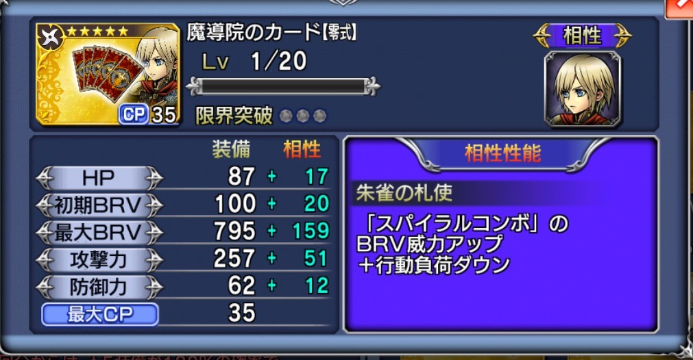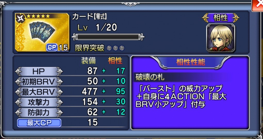 こちらは魔導院のカードと違い、ブレイブ攻撃をメインとした時に装備させるのがおすすめとなります。