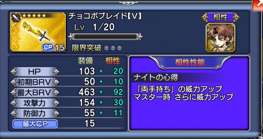 こちらは相性武器で誰でも装備ができる、バッツの相性武器となっています。