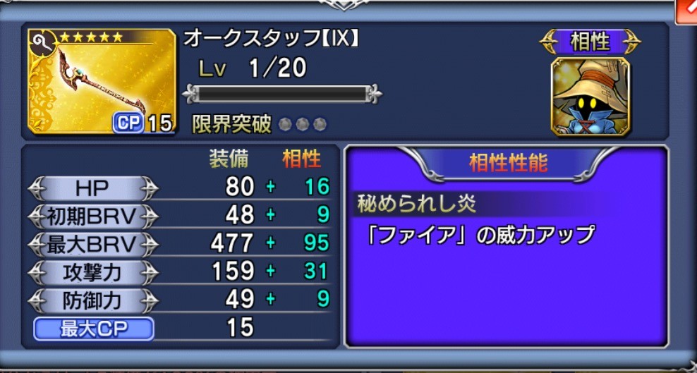 相性性能は単純で、ビビのアビリティ「ファイア」の威力を上げるというものになっています。