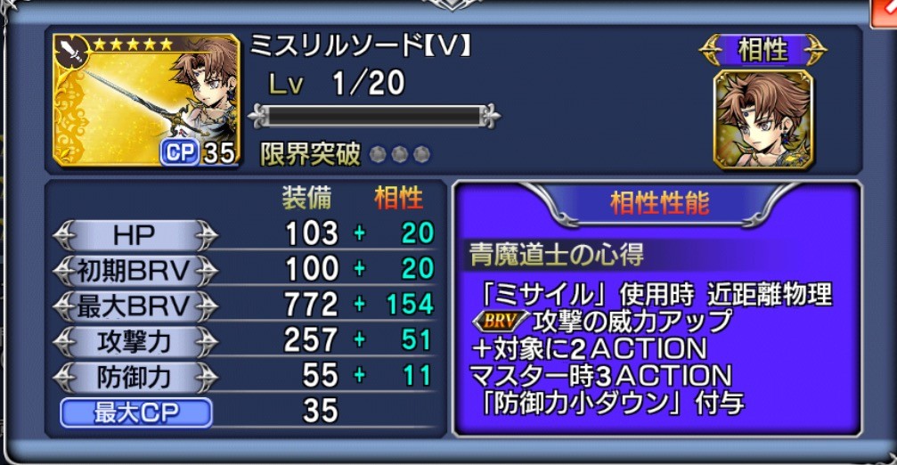 ブレイブ削りのジタンの次に多くブレイブが削れる武器となり、かなりの当たり武器と言えるでしょう。