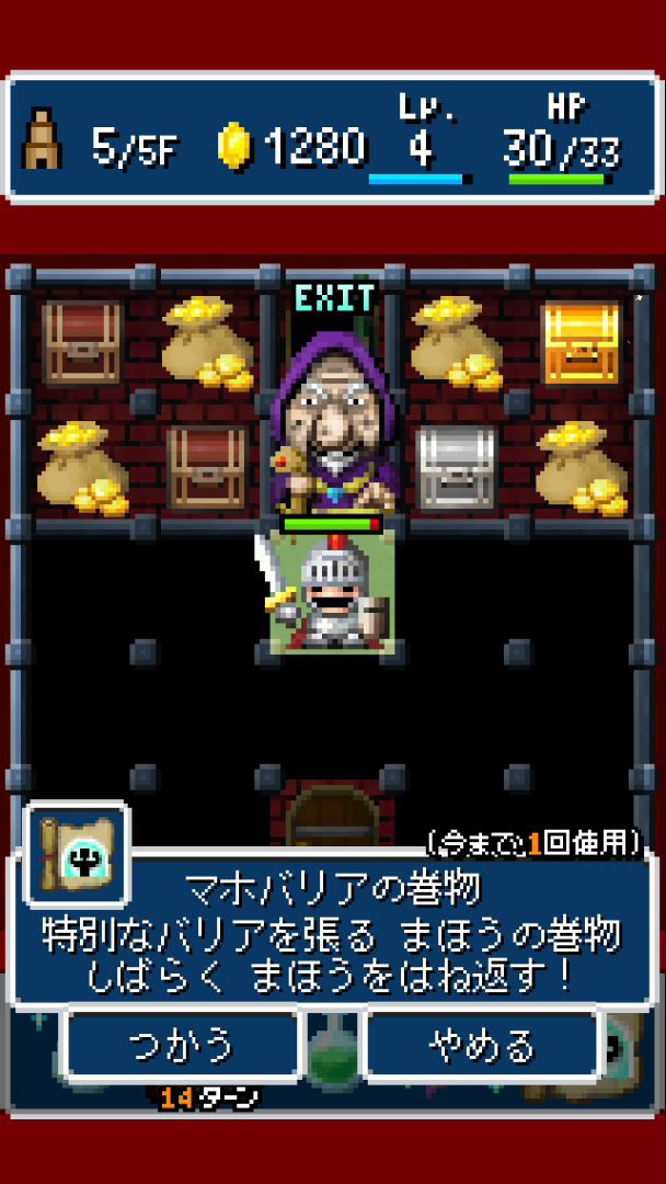 アイテムには回復、魔法、罠回避などのアイテムがあり使用回数があり、最大5つまで所持することが可能です。