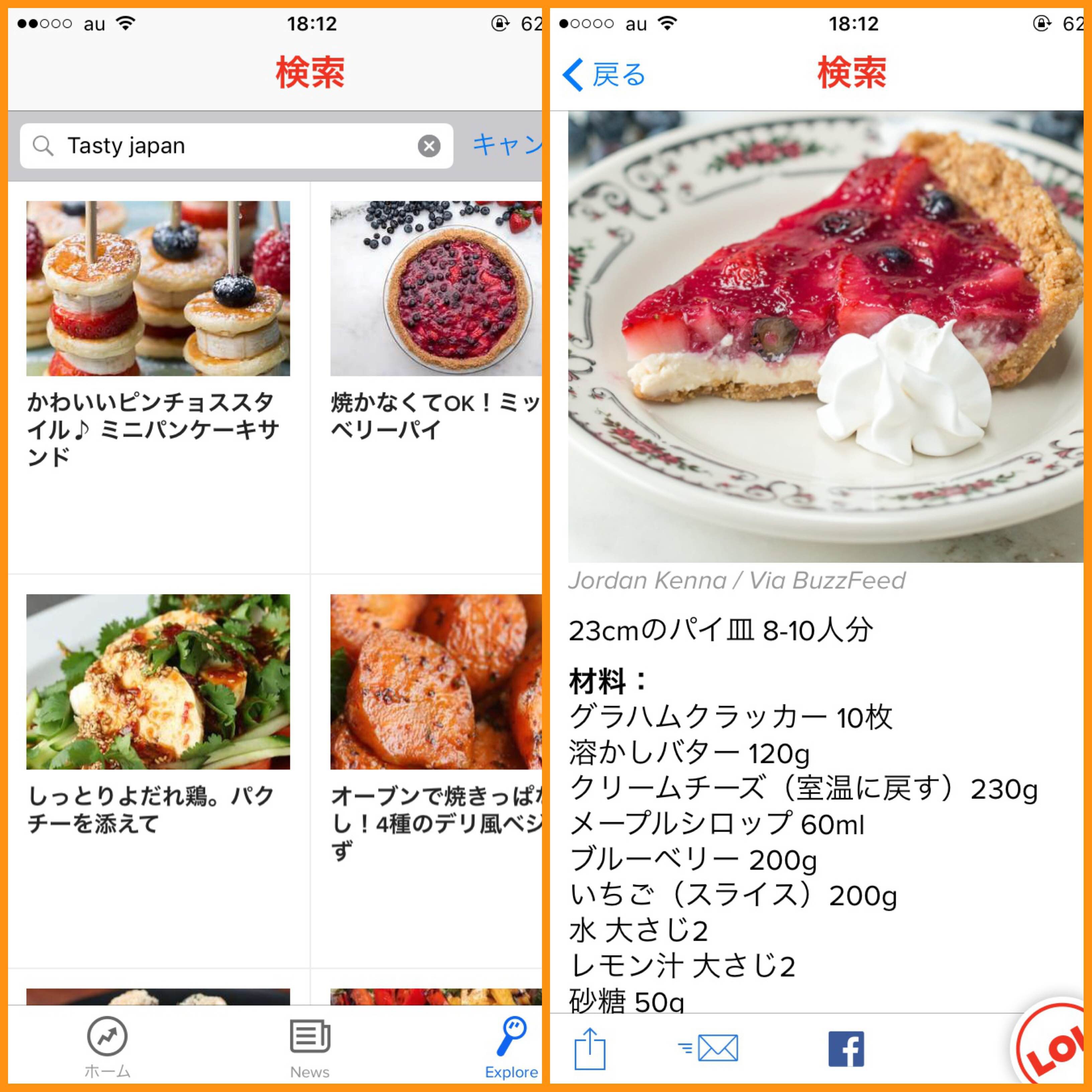 料理好きは必見の「Tasty Japan 」には、今にもお腹が空いてきそうな料理の写真がたくさんあります。さらにレシピまで載っているので、自分でおいしそうな料理も再現可能です。女子が好きそうな「スイーツ」や簡単なおかずなど様々あります。日本食というよりも海外のレシピが載っているので、「料理のレパートリーが足りない」なんてケースにもピッタリです。