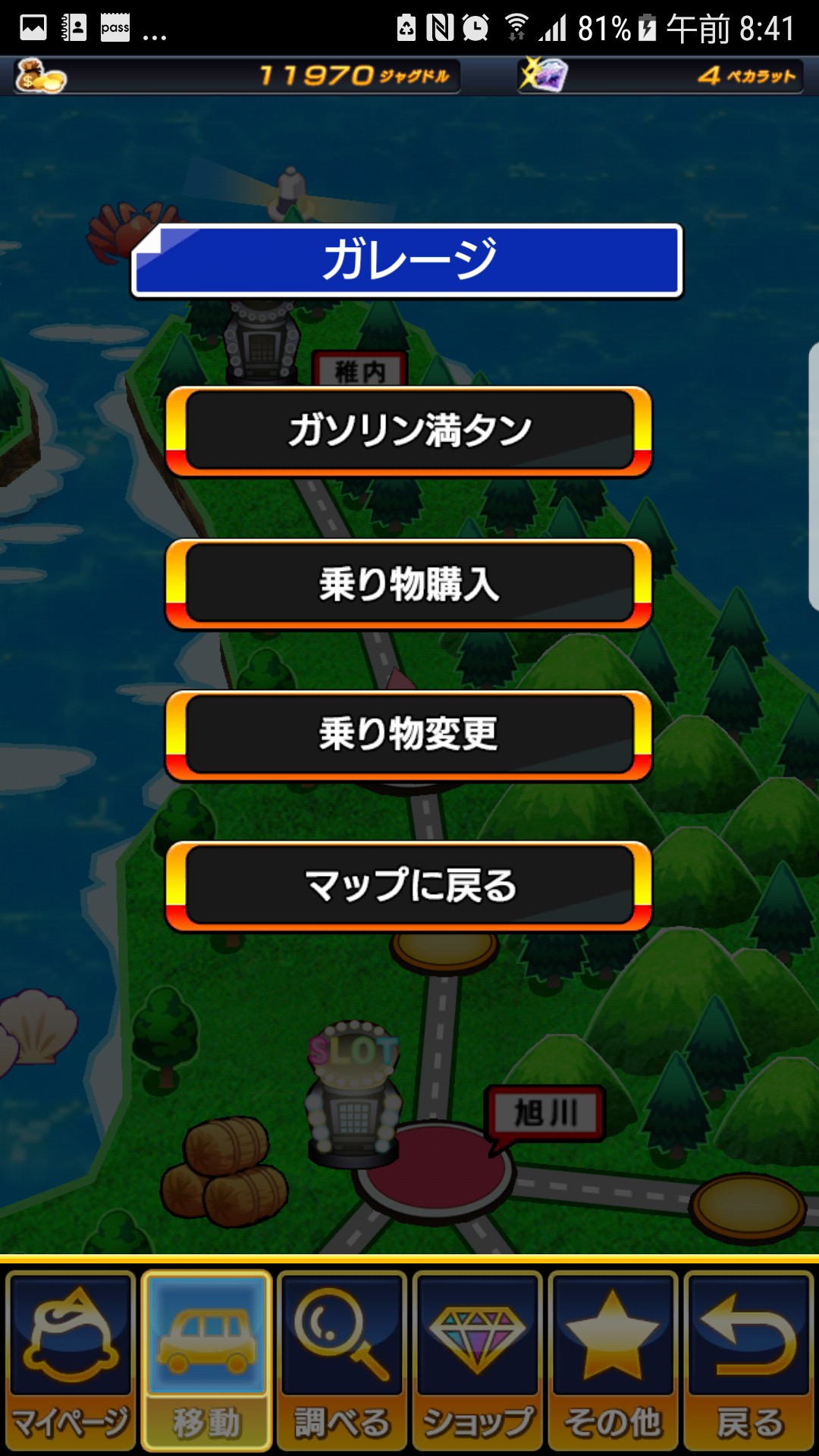 燃料補給ができるガレージマスによると「ガソリン満タン」「乗り物購入」「乗り物変更」ができ