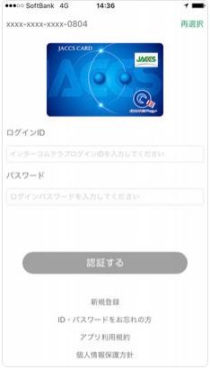 本人認証の方法もとても簡単で、JACCSカードの会員限定サービス「インターコムクラブ」にログインするだけです。