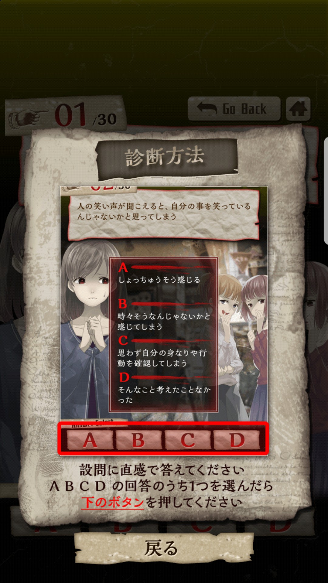 A、B、C、D の回答のうち1つを選んで画面下のボタンを押してください。