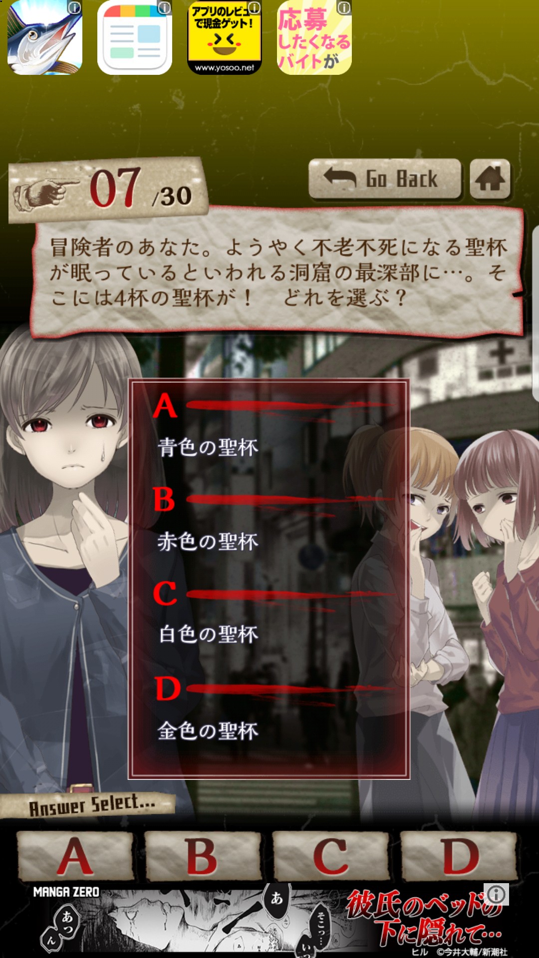 冒険者のあなた。ようやく不老不死になる聖杯が眠っているといわれる洞窟の最深部に・・・。