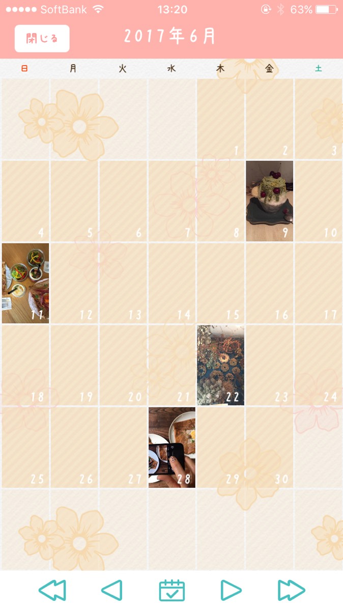 1か月ごとのカレンダーで登録した写真を振り返ることができます。去年の今頃何してたかな?など思い出を振り返るのに、大量のカメラロールのデータの中から、写真を遡ることは困難。そんなときにカレンダーで一目散に写真を振り返れるなんてとっても便利ですよね!