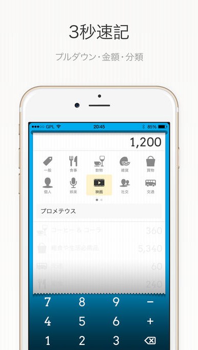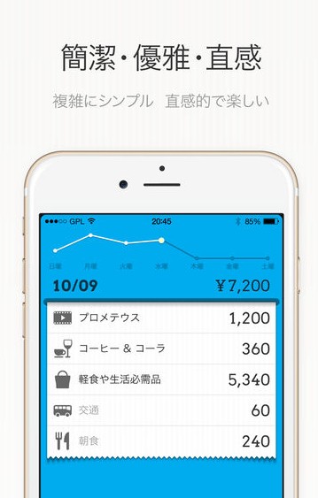 指先ひとつで収支の入力ができ、表示されている画面を引っ張るだけで家計簿へ加算される、使い勝手の良さを追求したシンプルなつくりが魅力になっています。独特な操作アクションに面白みすら感じられるので、細かな支出入力も楽しんで取り組んでいけます。
