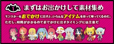 まずは配下達に「おでかけ」という仕事を与えていってアイテムを集めましょう!