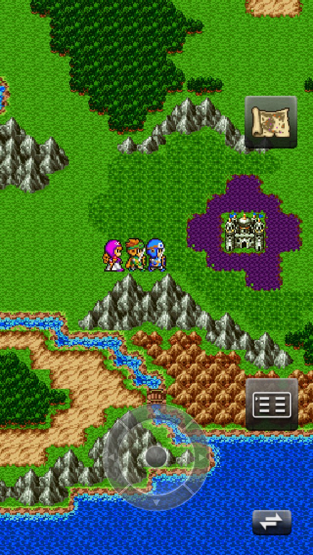 リメイク版を元にゲームアプリ化されているので、理不尽な難易度や突然消えてしまう冒険の書も無く安心して遊べるぞ!ボタンやコマンドをタップすることで操作ができるので楽ちんだ!