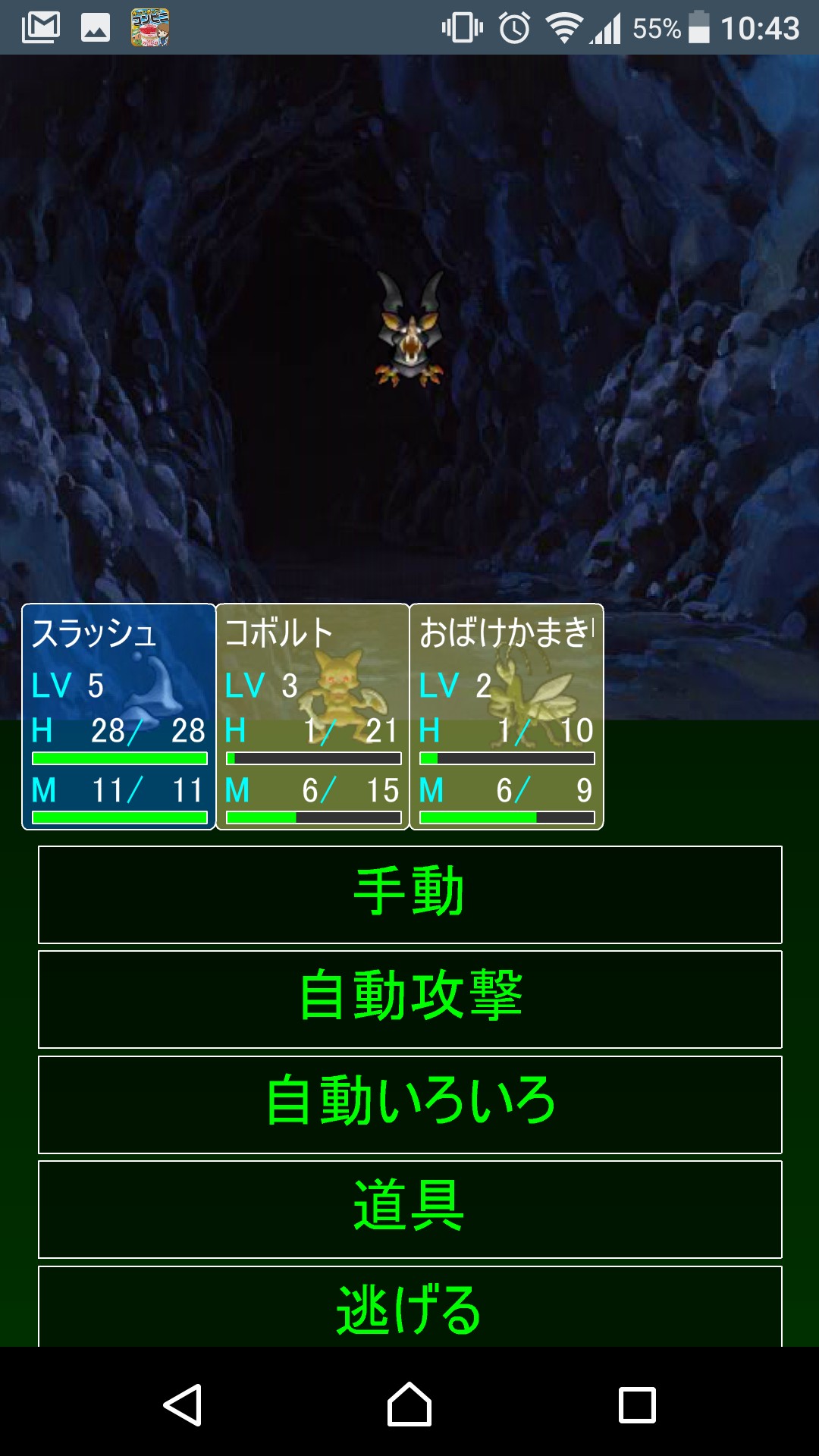 アプリをインストールして実際に「モンスターメイト」で遊んでみました。アプリを起動したら、さっそく冒険に出発です。チグラスの川、北の洞窟、コロシアム、暗黒の森から行き先を選択します。モンスターに出会ったら、バトル開始!今回は「手動」から「攻撃」を選んでみました。モンスターを倒すまで攻撃は続きます。モンスターを倒すと、仲間にすることができるので、今回は仲間に加えてみました。仲間にしたモンスターはパーティに追加して一緒に戦わせます。数が増えてしまった場合や、不要なキャラクターだった場合、仲間にする必要はないので、戦略を立てながら追加したほうがよさそうです。仲間が増えてきたら、「吸収」をしてモンスターを強化していきます。バトルに勝利すると「HP」や「MP」の回復に利用できる「GOLD」や「経験値」が獲得できるので、うまく活用してゲームをすすめていきましょう。これらを繰り返して、図鑑のフルコンプを目指していきます。