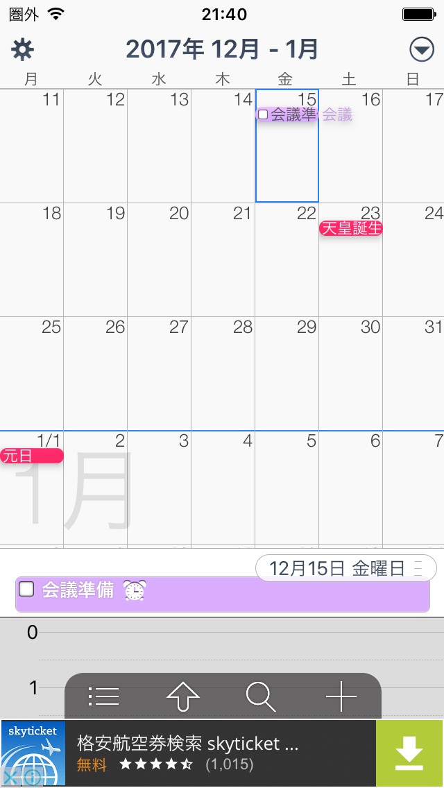 有料版のProは広告非表示になって予定リストが使えるようになります。