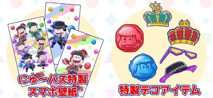 1.にゅ~パズ松特製壁紙、スマホ壁紙、特製デコアイテムを全員にプレゼント!
