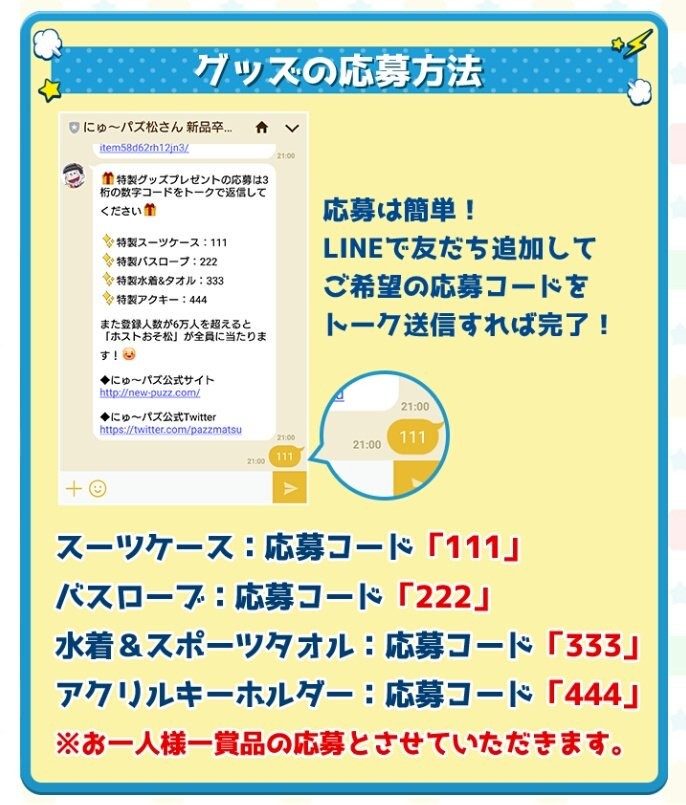③LINE事前登録で抽選でにゅ~パズ松オリジナルグッズ