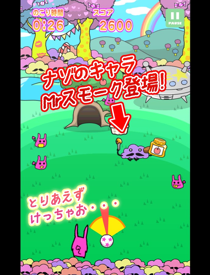 「アップルサッカー」の操作はとても簡単です。「でびっぷる」の前に現れる動く矢印をタイミングよく見て、ゴールするように押すだけ。ゴールしてリンゴを集めるとジャムができるので、それを謎の生き物「ミスタースモーク」に食べさせると離れ離れになっていたアップルモンスターと再会することができます。