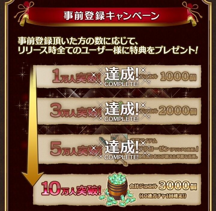 | 10万人 | ジュエル3000個(ガチャ10回分) |