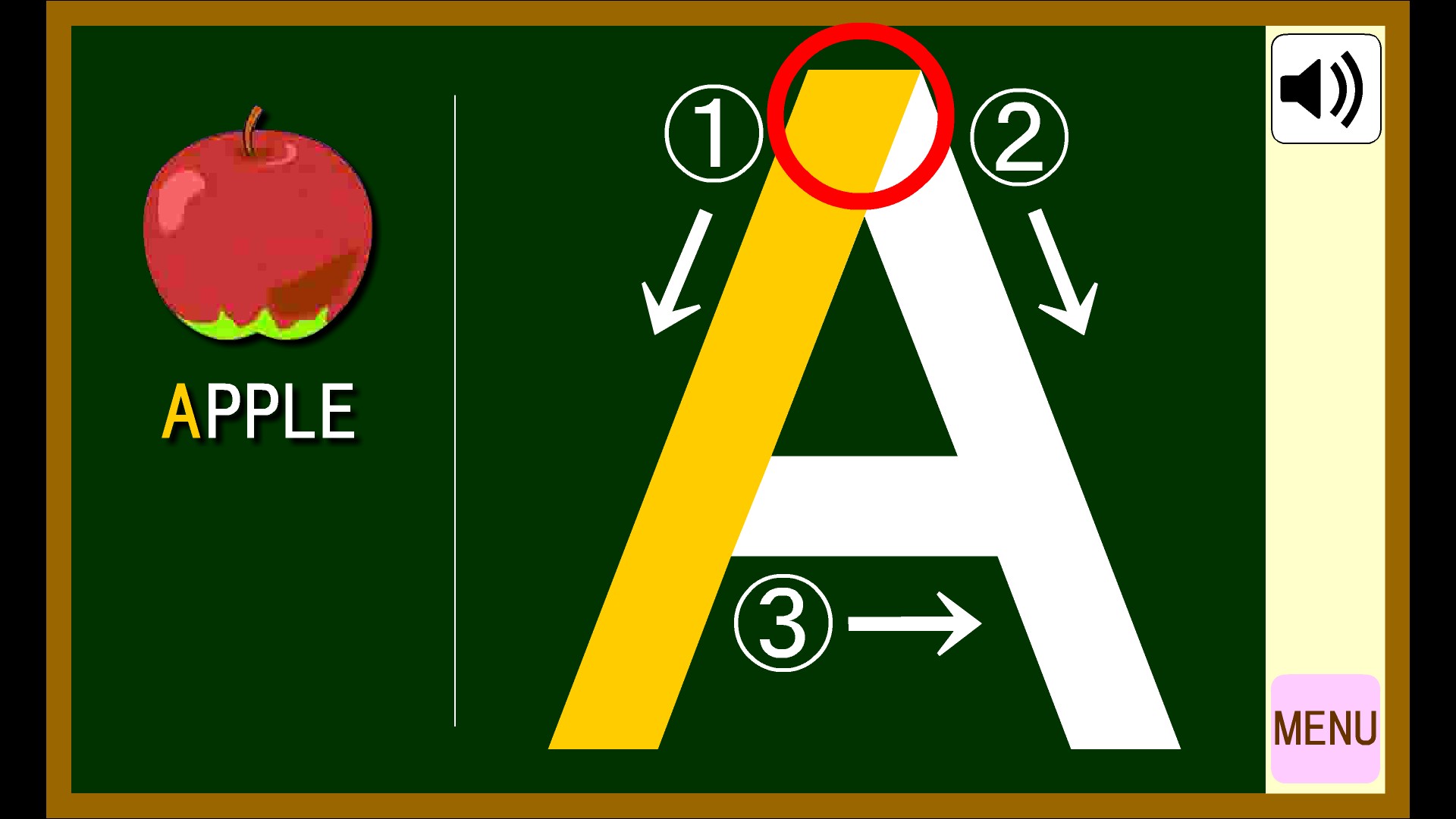 アルファべットの練習は、黄色く表示された線を順番になぞっていく簡単なものです。