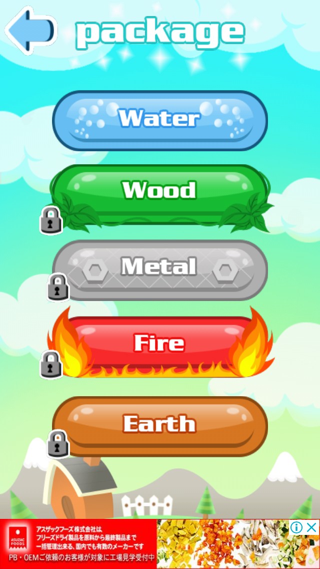 Water(ウォーター)をクリアすると、Wood(ウッド)がプレイ出来るというように、