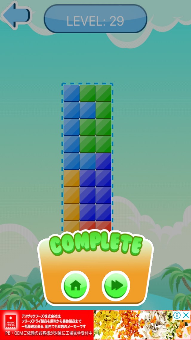決められたパターンを作り出していくシンプルなパズルゲームアプリなので、