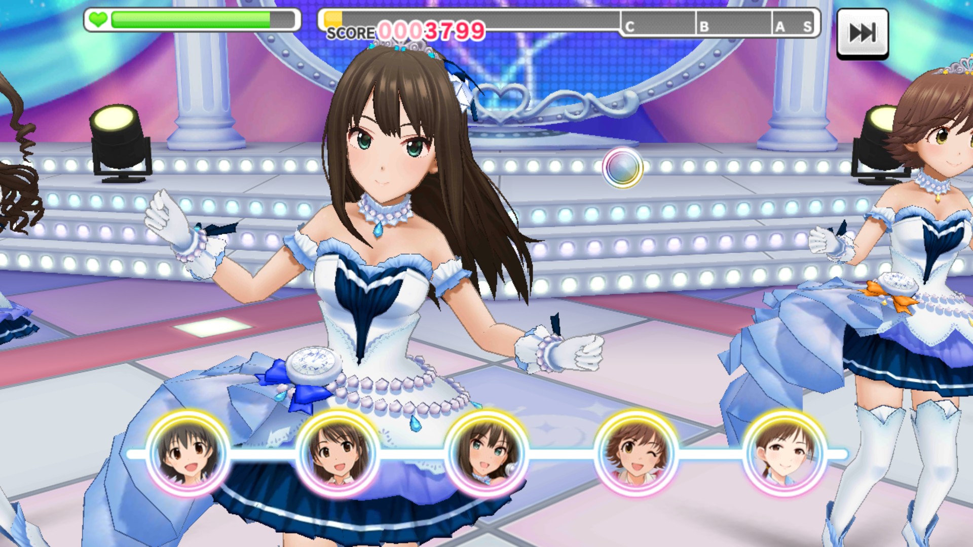 音ゲーパートの他、各アイドルたちと交流を深めるコミュパートももちろんあります。最近のアップデートで最高レアの排出率が3%になったり、