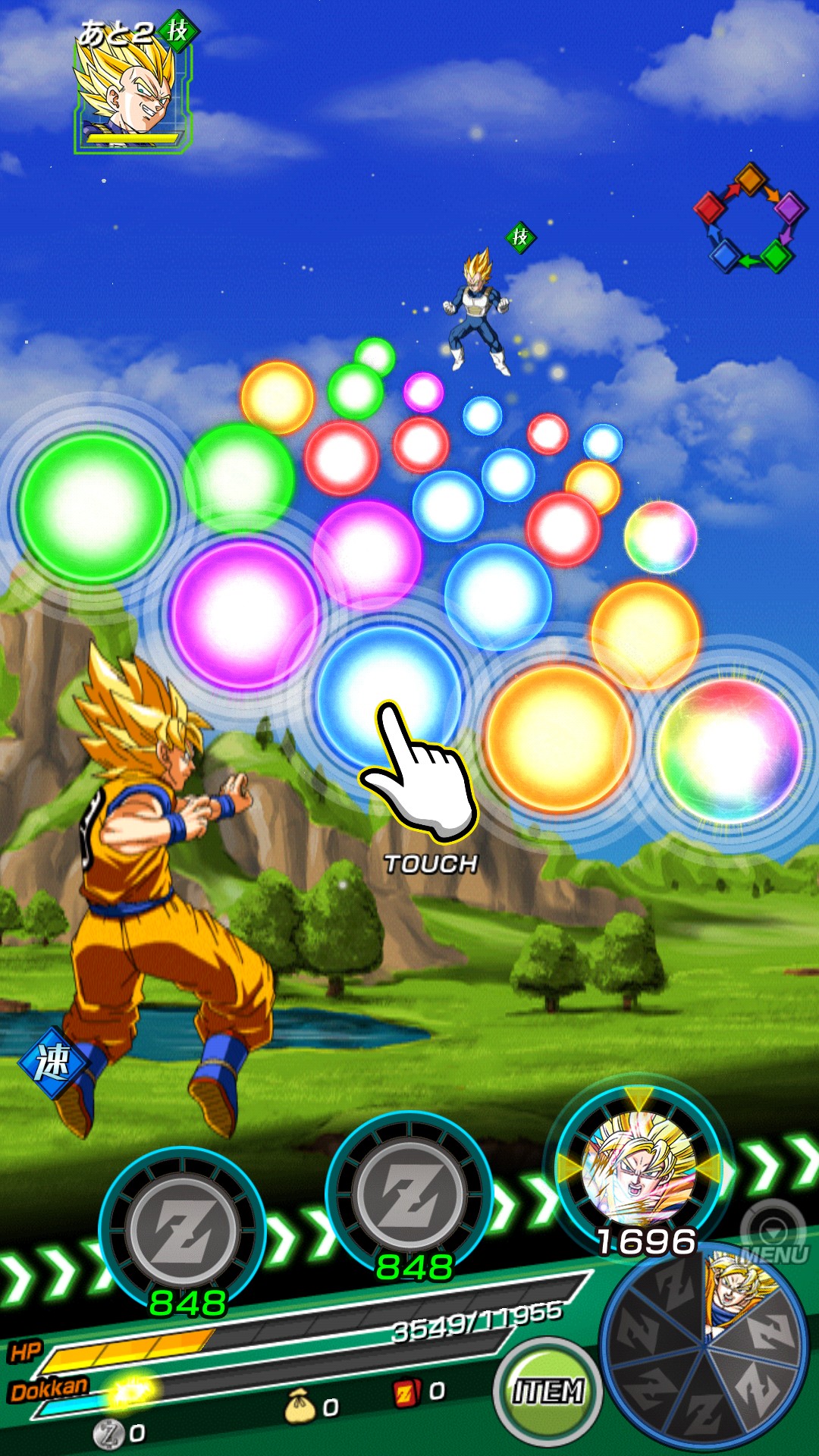なるべく同じ色のものを選んで消していくパズルとなっていて、気力がたまればかめはめ波や魔貫光殺砲などの技を見られます。