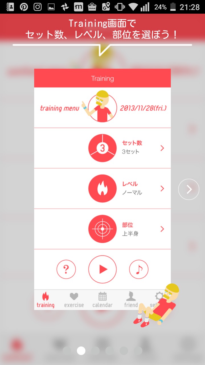 ダイエットや筋力トレーニングの際、痩せたい・鍛えたい部分を中心に音声付きのトレーニング方法を教えてくれるのが、3分フィットネスです。