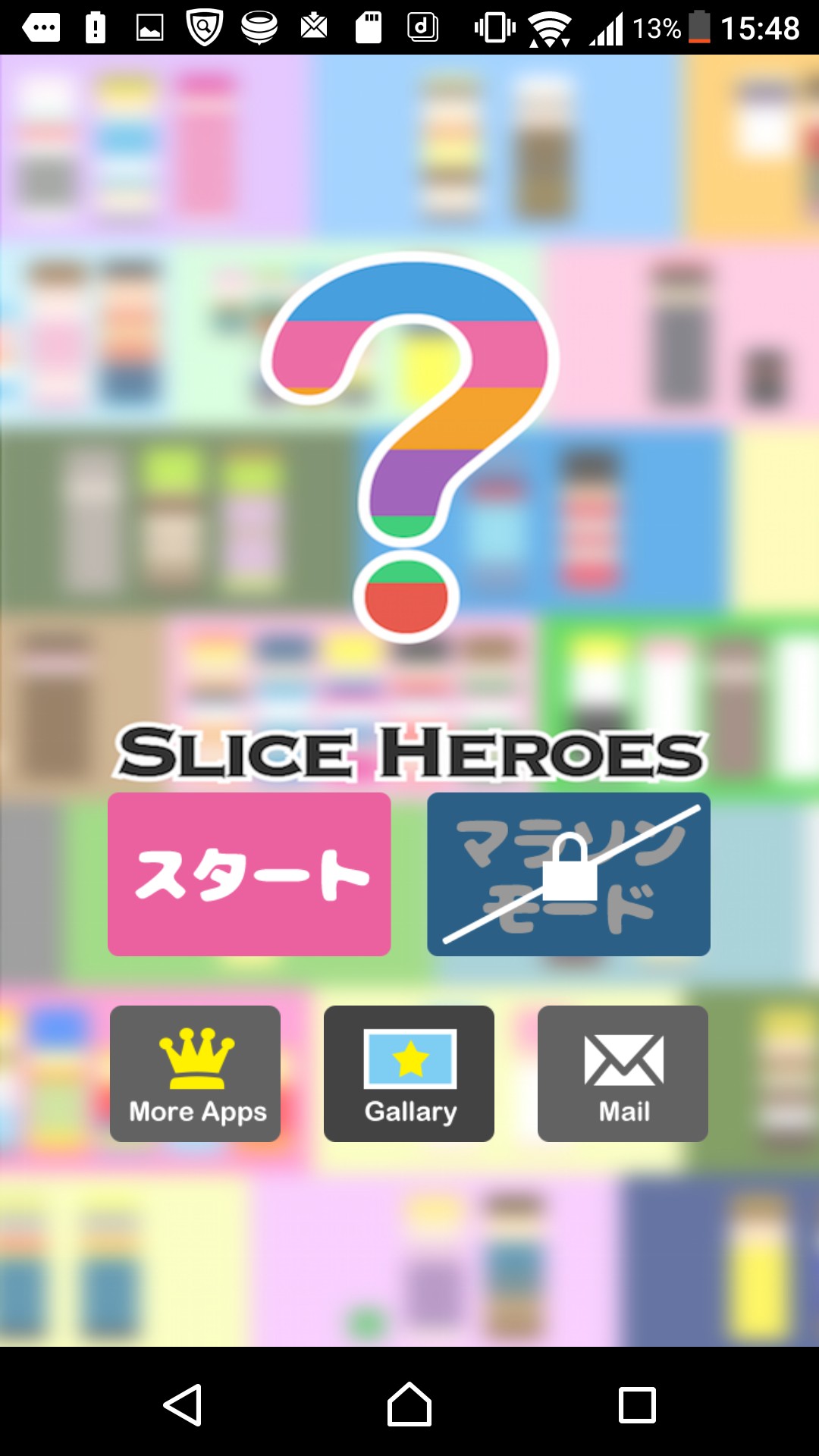 このスライスされたキャラ達を「スライスヒーローズ(スラヒー)」と呼び、スラヒーの色使いや周りを見て正解を導き出していきます。
