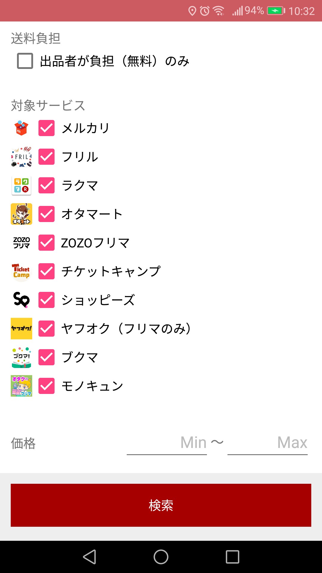 「フリマウォッチ」の魅力のひとつが、複数のフリマサービスの出品情報を横断して検索してくれることです。