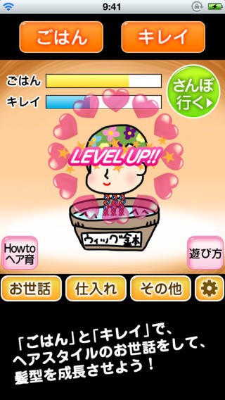 髪型を育てる趣向の一風変わった面白いアプリ。まだ髪が生えていないつるつるヘッドの状態から様々な髪型へと進化させていきます。髪型の種類は豊富で図鑑収集もできるので、
