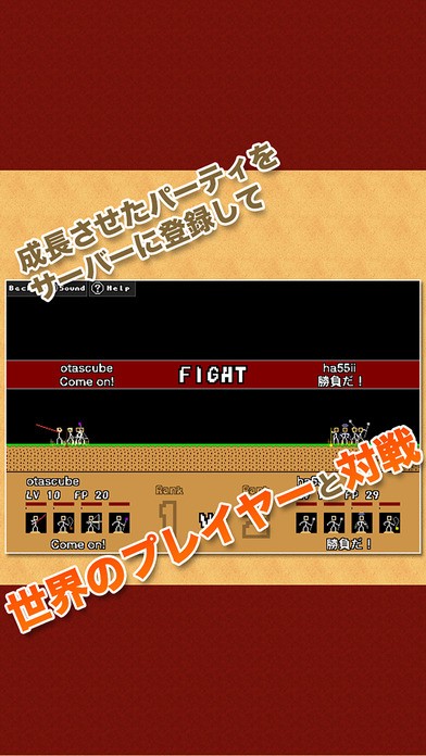 4人の棒人間を成長させて、そのパーティをサーバに登録すれば、