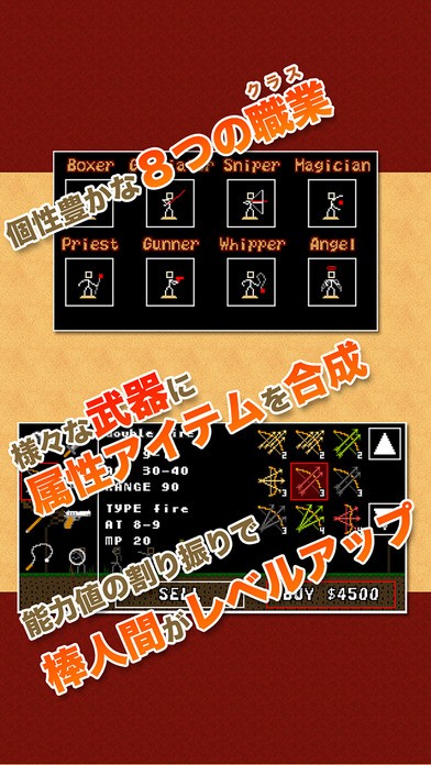 4人の棒人間はそれぞれ能力の違う8つの職業があります。