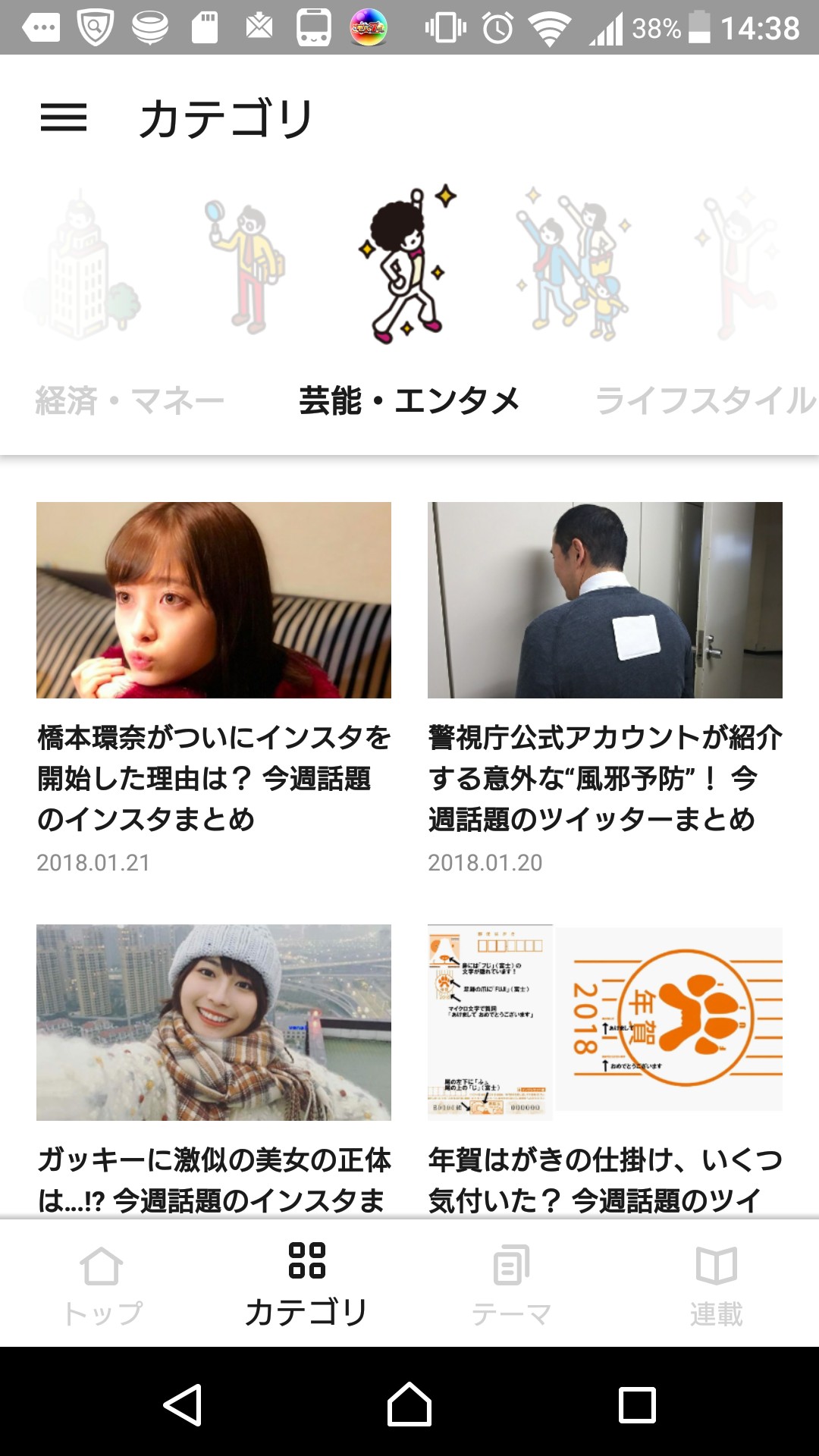 1日の配信量が多くライトな話題が中心で、記事はカテゴリごとに分けられているため煩雑ではなくスッキリとしていて見やすいので使い勝手も良く、移動中や待ち時間などの手隙の時間に読むには最適です。