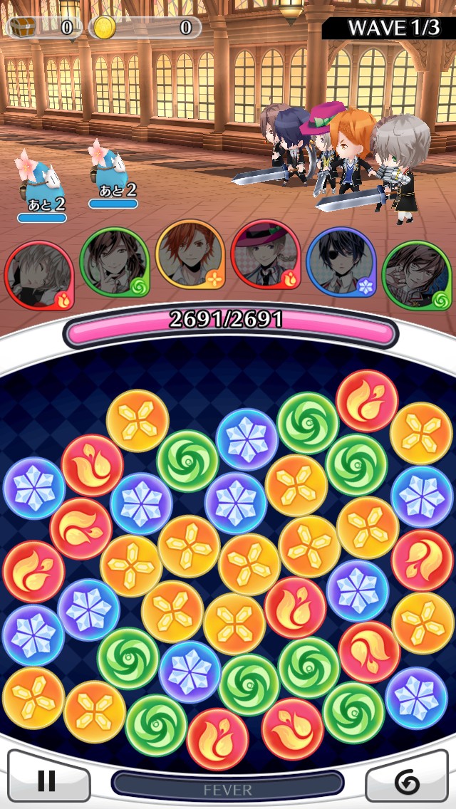 バトルはパズル方式です。ドロップと呼ばれる魔力の塊を指でなぞり消すことによって、仲間にパワーを送り、魔力を強化します。
