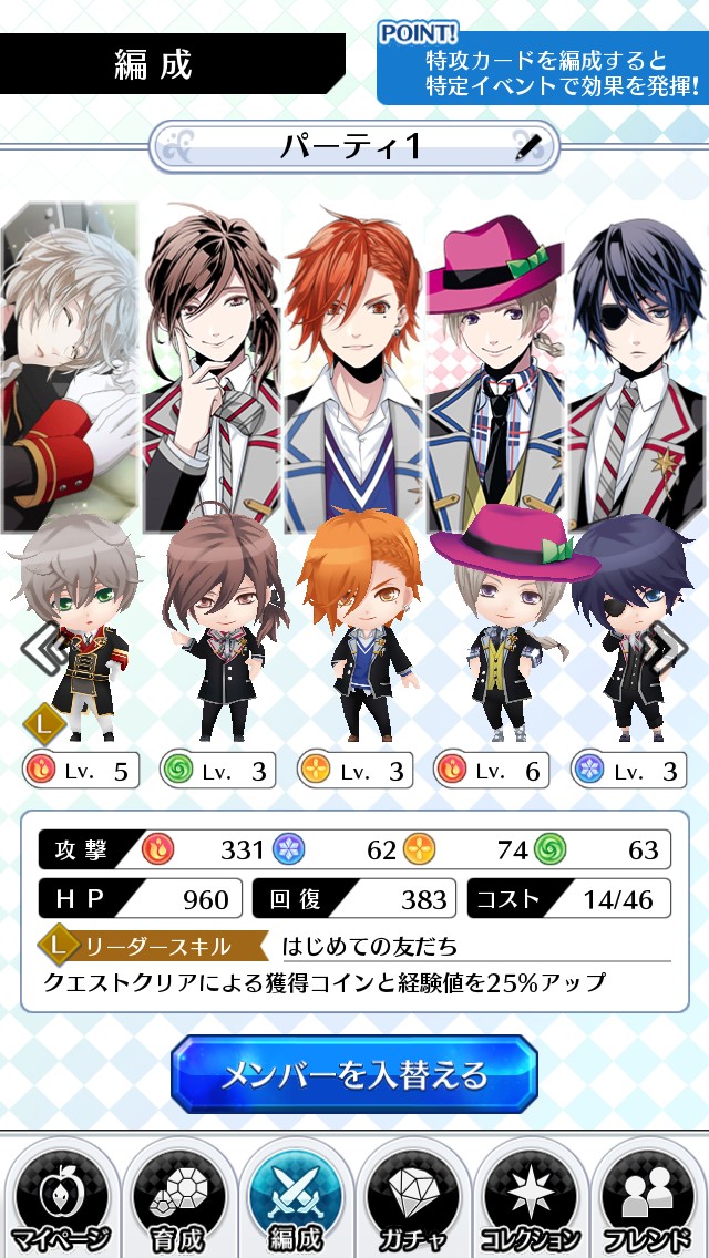 キャラクターの多さが特徴的なゲームアプリでもあるので、1つのパーティだけに頼らず、どのパーティもまんべんなくバトルに参加させて育ててあげましょう。