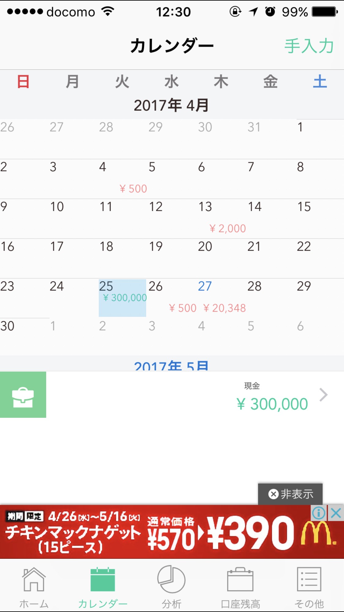 入力を忘れていた支出や収入、後から出てきたレシートを登録するときに活用してみてください。