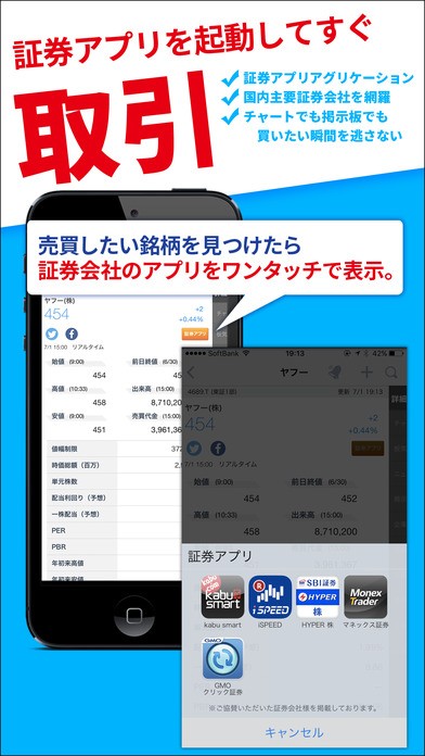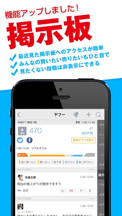 人気の掲示板や、株価予想などのオリジナルコンテンツも揃っています。
