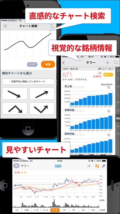アプリならではの表示形式もあり、気になる銘柄を簡単に管理できます。